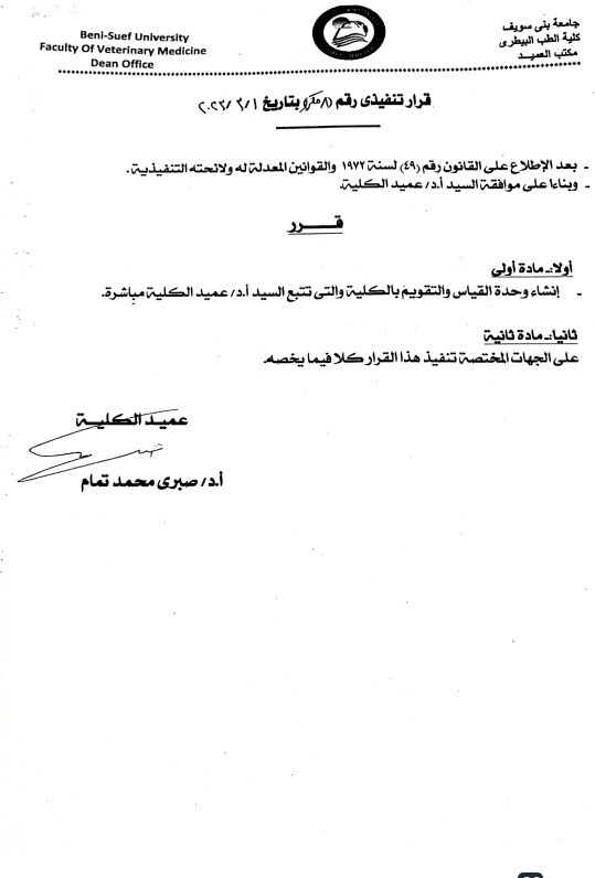 التوصيف الوظيفى لكليه الطب البيطرى جامعة بنى سويف
