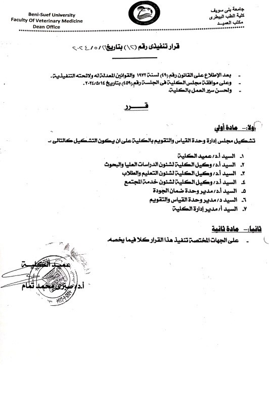 التوصيف الوظيفى لكليه الطب البيطرى جامعة بنى سويف